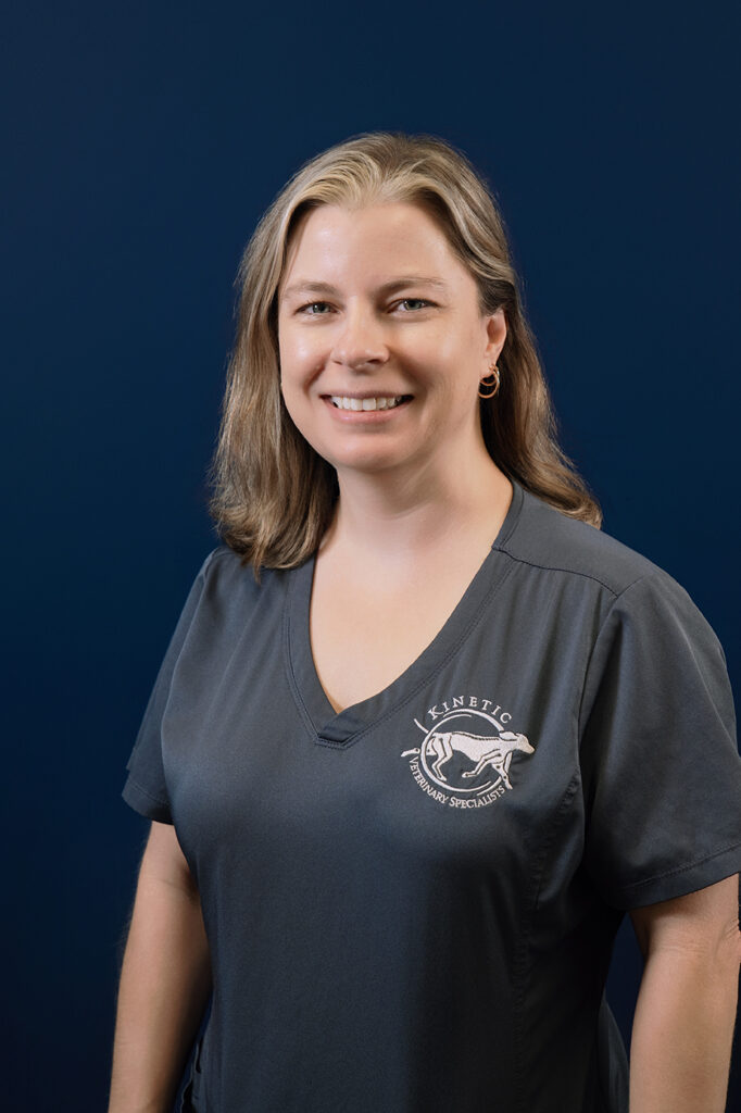 Dr. Kelly Vernon is a clinician in Kinetic Veterinary Specialists’ rehabilitation and integrative medicine team, playing a vital role in optimizing recovery following surgery or injury. She earned her veterinary degree at the University of Florida College of Veterinary Medicine in 2004. Dr. Vernon also holds an advanced certification in rehabilitation therapy from the University of Tennessee, and certifications in acupuncture and medical manipulation (similar to chiropractic) from Chi University.